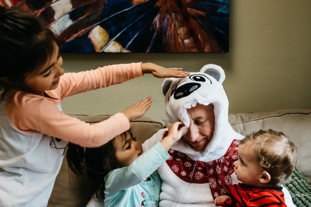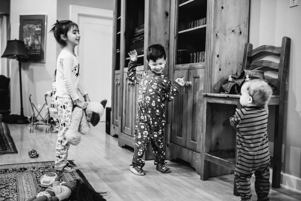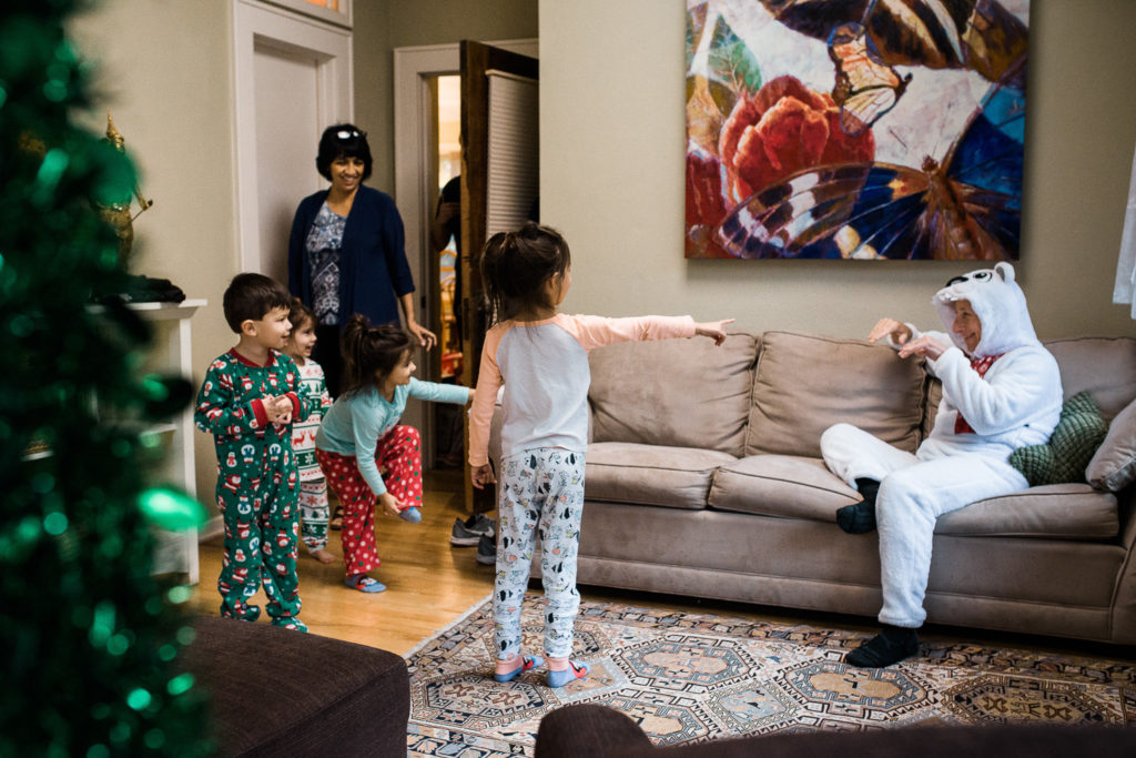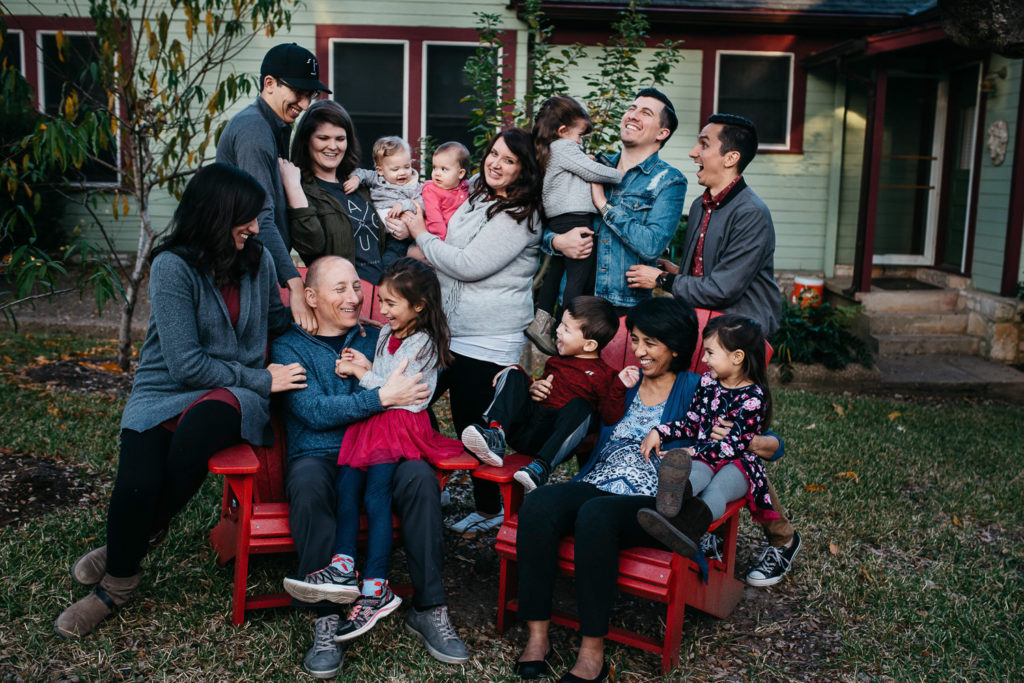 My whole family was set to get together in a big house in Austin over the Christmas holiday while my dad was home for a month from an overseas assignment for the Air Force. In the past, we’ve tried the family portrait route and certain family members (I won’t name names) have complained before, during and afterwards. This time I decided I really want to capture what it actually feels like to all get together with 8 adults and 6 kids 6 and under (and also didn’t want to hear the complaining).
